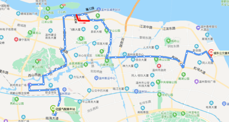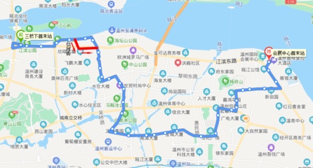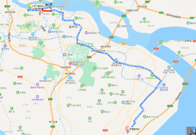 沿温州大道向东行驶954米右转