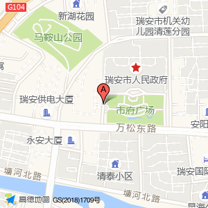 瑞安市人民政府占地面积约:25539㎡和温州市瑞安市万松东路与万松东路三百八十一弄交叉口东北100米相距 ⇄ 38.0459m