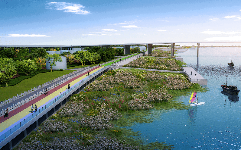 ➤沿滨河路向东南步行106米直行