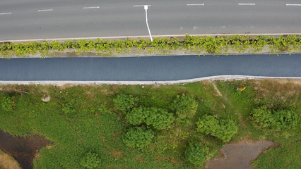➤沿汇水河路向西北步行1074米向右前方行走
