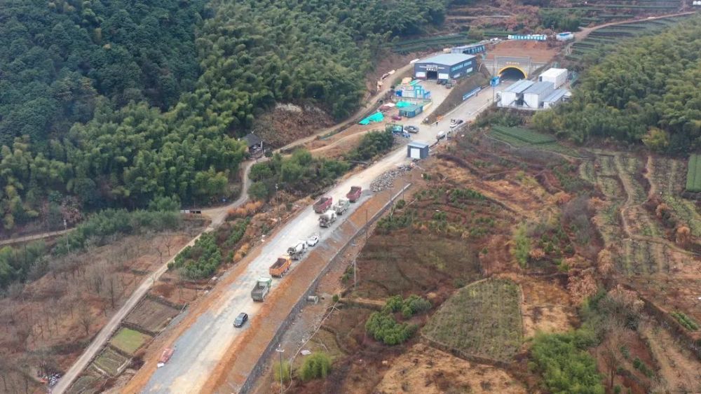 沿104国道向西南行驶1.7千米直行进入隧道