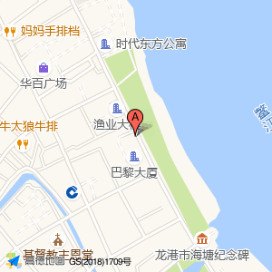 停车场位于龙跃路3号(龙港外滩大堤)城市广场东方向42.1681米的位置。
