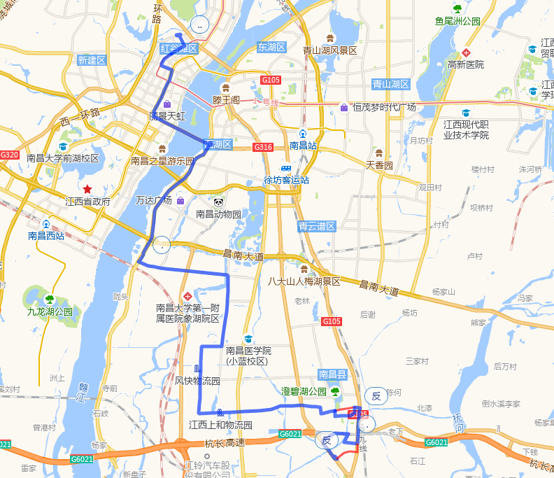沿104国道途径人民路、京福线向南行驶2.0千米直行进入隧道