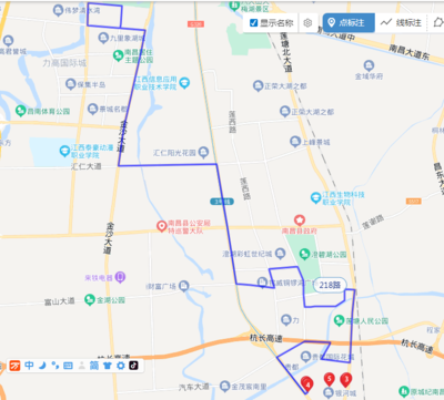 ⓞ沿富强路向南骑行1124米向右前方行驶