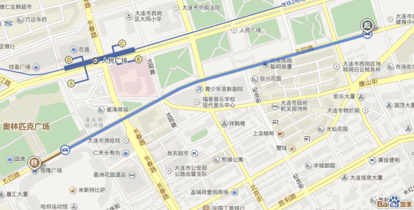 ⓞ沿大连路向西骑行511米向右前方行驶