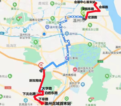 沿温州大道向西行驶656米左转