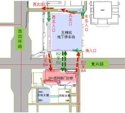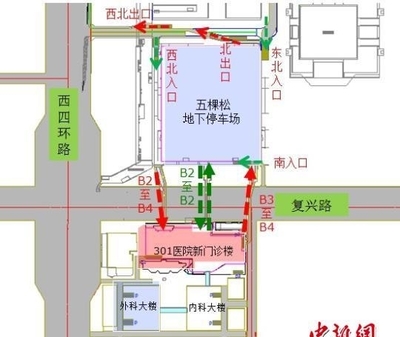 ![]() 复兴大厦地下停车场(出入口)>>位置示意图 |