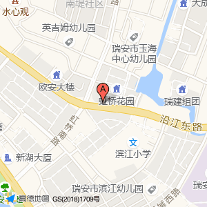 虹桥花园(虹桥南路)占地面积约:11426㎡和浙江省温州市瑞安市玉海街道虹桥花园虹桥花园(虹桥南路)(沿江东路50-54号附近)相距 ⇄ 2.727m