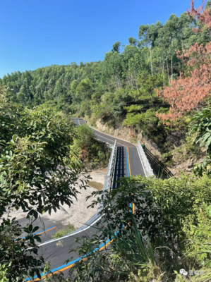 沿西二线途径百丈漈水库大桥、618乡道、岩背大桥、兴源路、田园路向东行驶4.5千米向左前方行驶