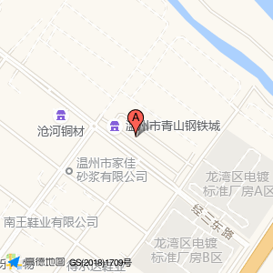 龙湾农商银行(钢铁城支行)位于蓝田标准厂房基地纬一路2号(沧河铜材)建材五金市场|公司西方向181.73米的位置。