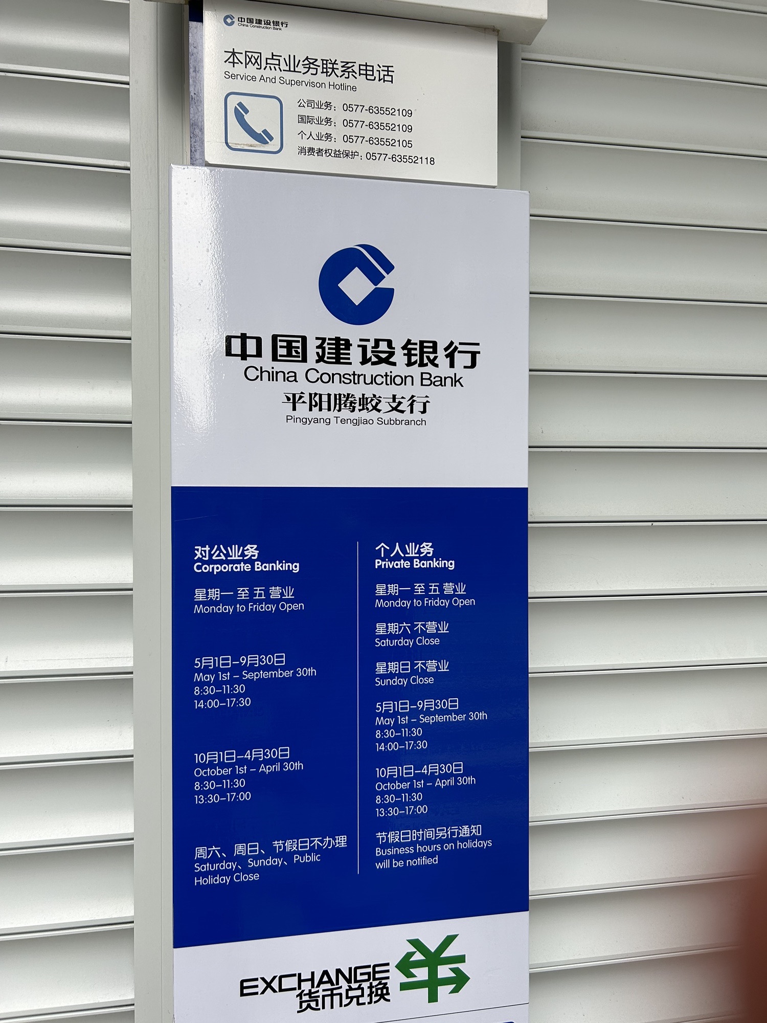 | 所在省份:浙江省 | 营业时间:对私:周一至周五:08:30-11:30;14:00-17:30,周六:不营业,周日:不营业;对公:周一至周五:08:30-11:30;14:00-17:30 |