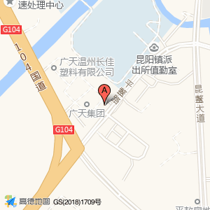 中华财产保险位于昆阳镇昆敖路与104国道交叉口(广天集团)公司西方向55.9938米的位置。