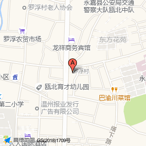 百乐旅馆(罗浮大街)占地面积约:646㎡和浙江省温州市永嘉县瓯北街道永嘉农村合作银行(清水埠支行)永嘉农商银行(清水埠支行)(江北街道罗浮大街1号)相距 ⇄ 18.3178m