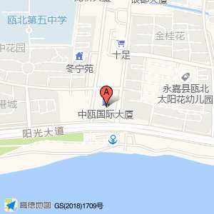 阳光景园占地面积约:10000㎡和浙江省温州市永嘉县瓯北街道兴业银行(永嘉支行)中瓯国际大厦(江北街道龙桥)相距 ⇄ 45.2593m