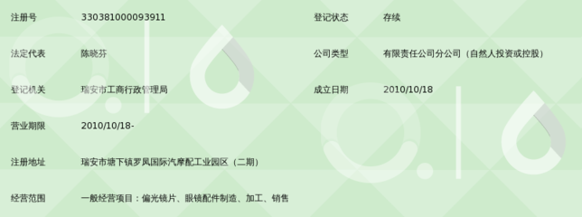 瑞安市视尚光学眼镜科技有限公司是浙江省温州市下的公司,评分等级:A级|,所属商圈:东二路
