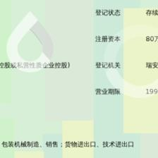 | 所属类型:公司 | 地址:浙江省温州市瑞安市南滨街道天翔染整瑞安高新技术产业园区(东二路与围二路交叉口东南220米) |