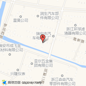 天瑞新材料位于高新路58号家乐汽车智配园一栋(瑞安市浩宇汽车部件有限公司)汽车服务相关东方向349.145米的位置。