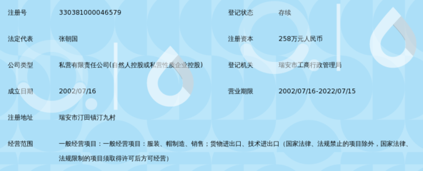 瑞安市创新服饰有限公司是浙江省温州市下的公司,评分等级:A级|,所属商圈:镇府北路