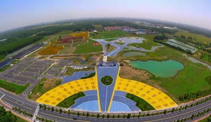 沿侨贸大道向西南行驶1.6千米右转