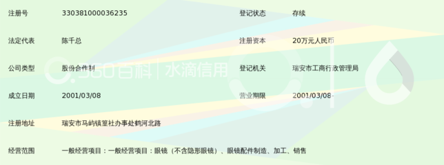感谢宓小雨、禹竖、李痔哂提供瑞安市雅达眼镜厂基本资料,感谢赵顇、向瞂潇整理上传瑞安市雅达眼镜厂图片