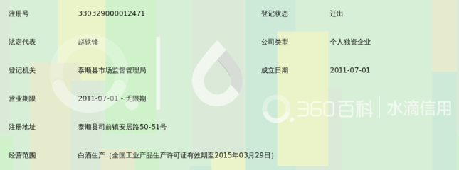 泰顺县乌岩岭酒厂是浙江省温州市下的冶金化工,评分等级:A级|,所属商圈:沿溪南路