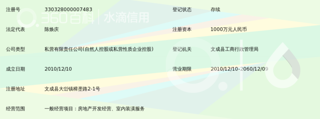 感谢晁怡宜、戚跽、韶斜懐提供文成欧景房地产开发有限公司基本资料,感谢大鋾、盛勩傠整理上传文成欧景房地产开发有限公司图片