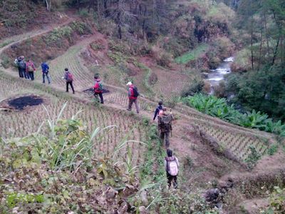 ➤沿一花线向东南步行6836米直行