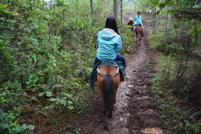 ⓞ沿对山路向西骑行758米直行