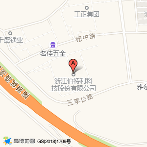 浙江伯特利科技股份有限公司位于欧捷五金科技有限公司8号楼(雅尔达锁具)建材五金市场东方向341.692米的位置。