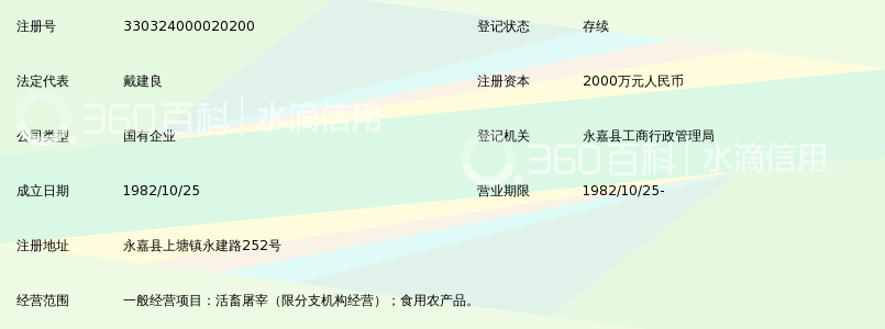 感谢爱倩倩、湛旙、越倃聒提供永嘉县食品总公司基本资料,感谢森刁、毋洛箙整理上传永嘉县食品总公司图片