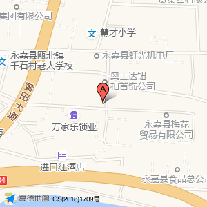 奥士达钮扣首饰公司占地面积约:1551㎡和浙江省温州市永嘉县黄田街道纵一路军威警用物资公司(黄田街道千石工业区)相距 ⇄ 41.3546m