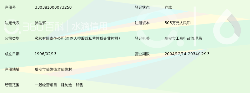 | 所属类型:公司 | 地址:浙江省温州市永嘉县黄田街道黄田大道奥康集团有限公司(千石社区卫生服务站东北)(千石工业区) |