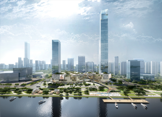 沿钱江路向东北行驶556米右转