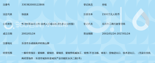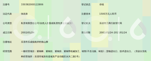 | 所属类型:冶金化工 | 地址:浙江省温州市乐清市城东街道汇丰铜业(城东街道塘儿104国道凤翔路) |
