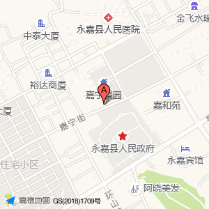 浙江省永嘉县财政局占地面积约:5952㎡和浙江省温州市永嘉县北城街道嘉宁街121号嘉宁景园(北城街道嘉宁街)相距 ⇄ 17.9708m