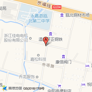 嘉松科技占地面积约:3452㎡和浙江省温州市永嘉县瓯北街道浦东北路四方阀门(浦东北路与市场路交叉口北120米)相距 ⇄ 40.0251m