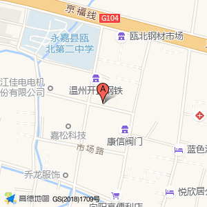 永嘉耐天阀门厂位于瓯北镇浦一工业区(钢材市场旁)(浙江佳电电机股份有限公司)机械电子西方向168.385米的位置。
