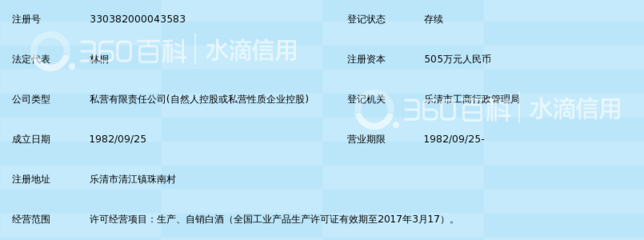 浙江雁荡山越青贡酒业有限公司是浙江省温州市下的工厂,评分等级:A级|,所属商圈:大菘中路