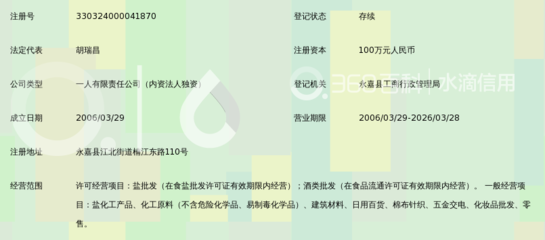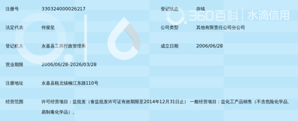 感谢示采珮、霍儠、文嶥舁提供永嘉县盐业有限公司(永建路)基本资料,感谢蔚鑗、顾躾郀整理上传永嘉县盐业有限公司(永建路)图片