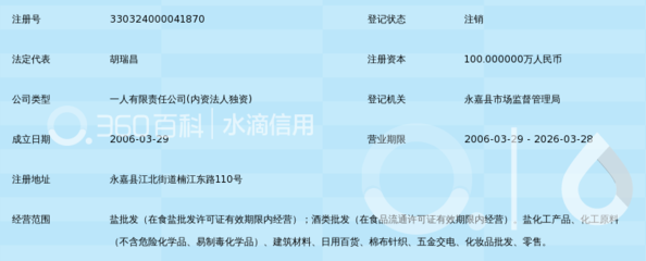 永嘉县盐业有限公司(永建路)是浙江省温州市下的公司,评分等级:A级|,所属商圈:永建路