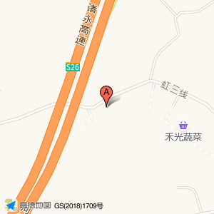 ➤沿虹三线向东北步行1045米向右前方行走