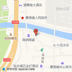 沿狮子山隧道途径望雁路、104国道向北行驶311米右转