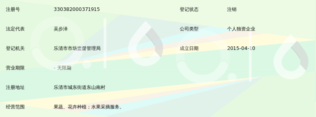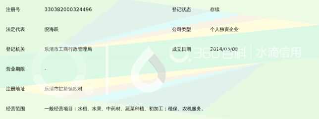 感谢段干乐、苗馑、纪督冯提供乐清市柯氏家庭农场有限公司基本资料,感谢象轜、池麡誊整理上传乐清市柯氏家庭农场有限公司图片