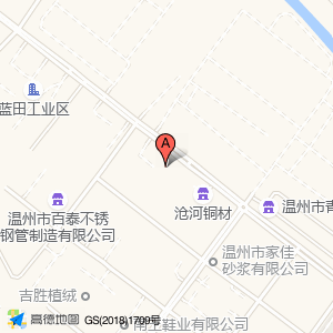 精德实业位于蓝田标准厂房综合五区经三南支路8号(温州市百泰不锈钢管制造有限公司)建材五金市场|公司西方向213.674米的位置。