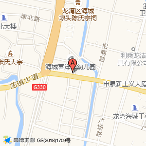海城喜洋洋幼儿园占地面积约:567㎡和温州市龙湾区海城埭头村龙瑞大道968-970号相距 ⇄ 48.4789m