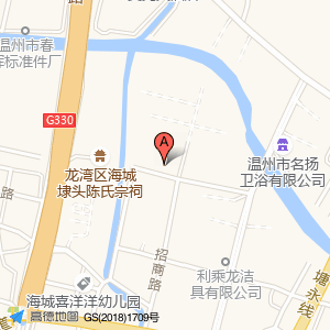 温州市九法智能卫浴有限公司位于兴工路与旭升路交叉口西60米(龙湾区海城埭头陈氏宗祠)风景名胜西方向124.444米的位置。