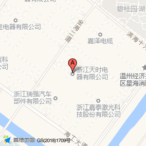 浙江天时电器有限公司位于龙湾区经济技术开发区金海园区金海二道十九路458号(浙江天时电器有限公司)公司Center方向0米的位置。