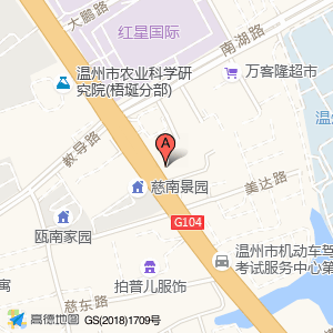 尚铤服饰(慈南景园东北)位于梧田街道104国道南白象段2070号(温州市机动车驾驶员考试服务中心第二考场)驾校东南方向206.541米的位置。
