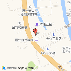 温州鑫竹宾馆占地面积约:124㎡和温州市瓯海区金竹工业区霞金路432号辉煌五金店边上104国道河路交叉路口相距 ⇄ 36.2344m