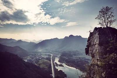 沿104国道向西南行驶559米直行进入隧道